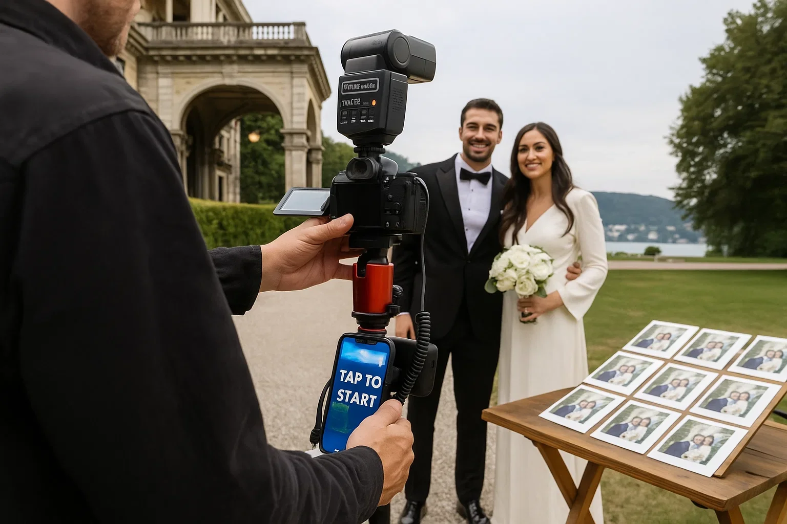 The booth blends the timeless charm of printed photos with innovative digital tools, turning every wedding moment into both a keepsake and a shareable memory.