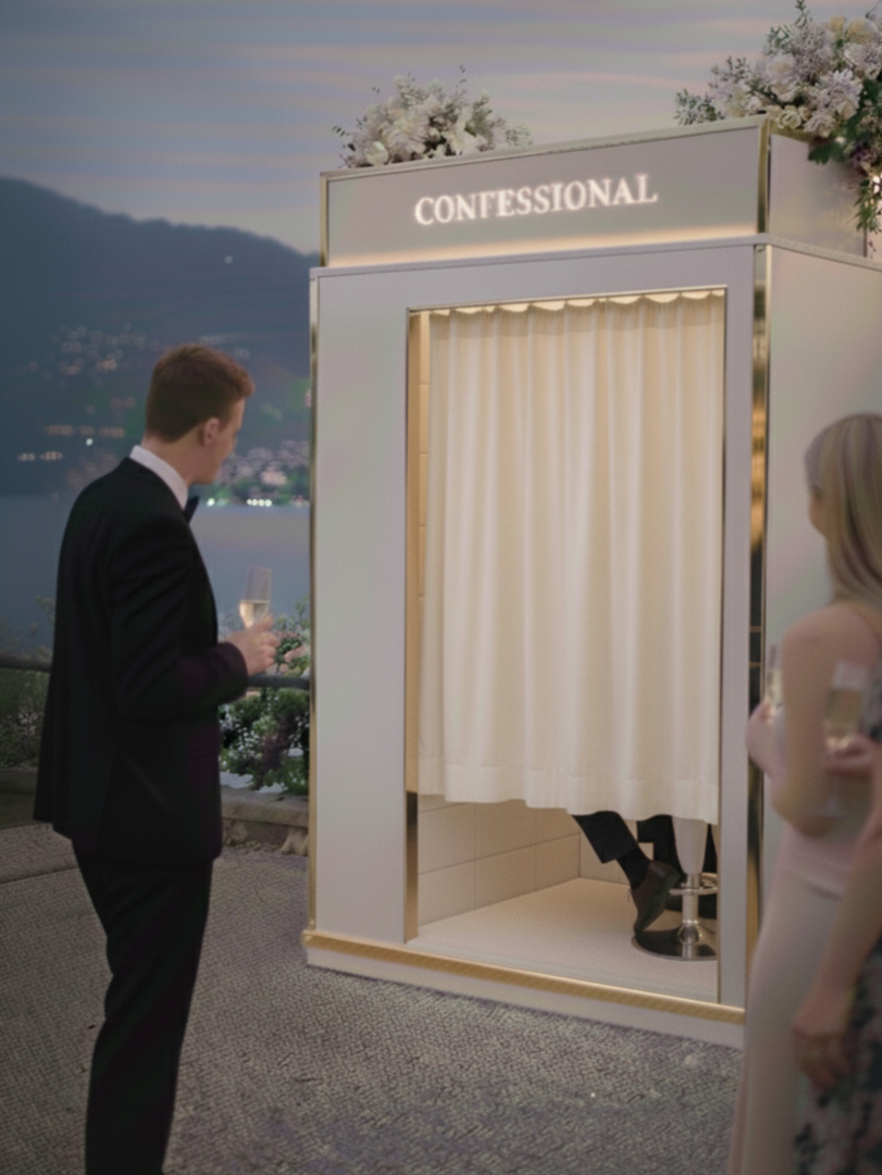 The Wedding Confession Booth allows guests to leave a video message for the couple, creating spontaneous and authentic memories.